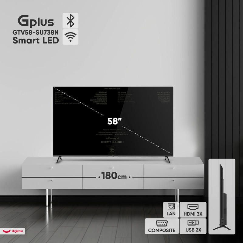 با سه درگاه HDMI، دو درگاه USB، وایفای و بلوتوث، به راحتی به تمام دستگاههای خود متصل شوید. گیرنده دیجیتال داخلی DVB-T2 هم شما را از خرید دستگاه جداگانه بینیاز میکند. جیپلاس GTV-58SU738N، با ترکیب هوشمندانهی کیفیت تصویر 4K، صدای دلنشین و امکانات هوشمند بومیسازیشده، گزینهای ایدهآل برای لذت بردن از سینمای خانگی به سبک ایرانی است.
