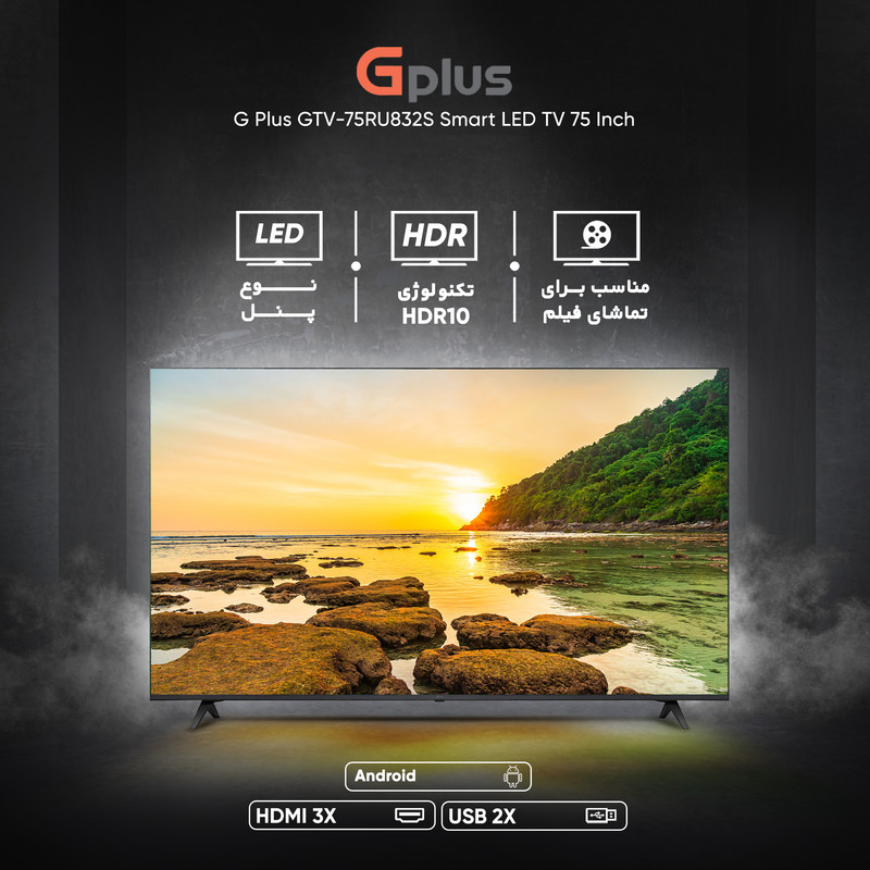 تلویزیون ال ای دی هوشمند جی پلاس مدل GTV-75RU832S سایز 75 اینچ