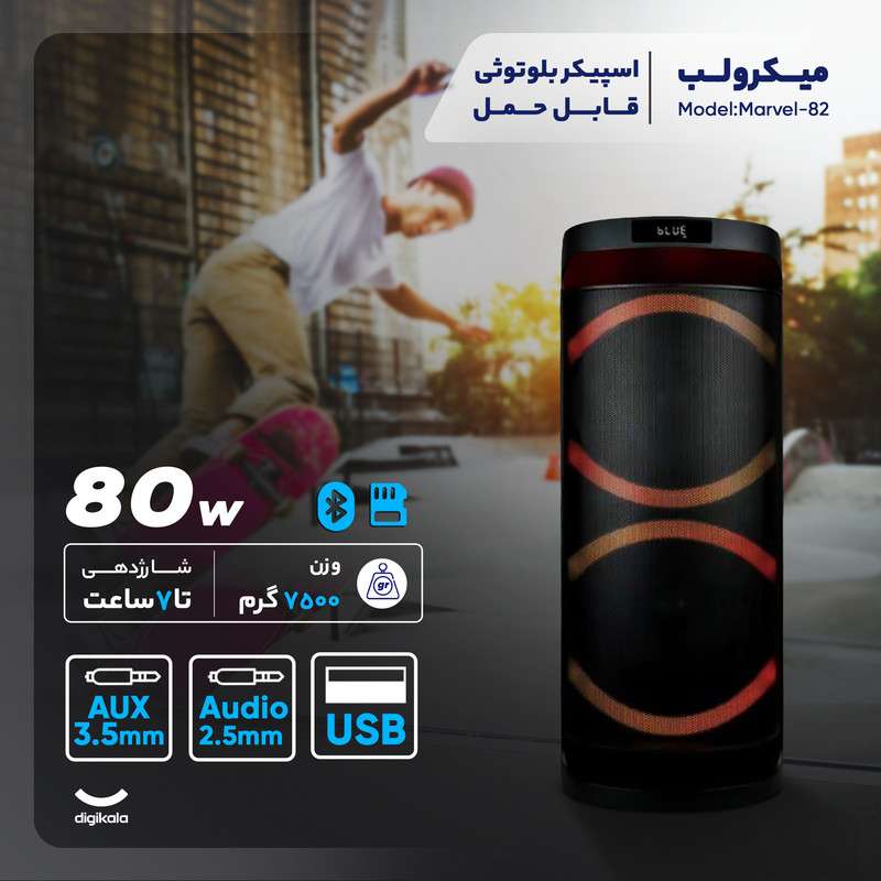اسپیکر بلوتوثی قابل حمل میکرولب مدل Marvel-82